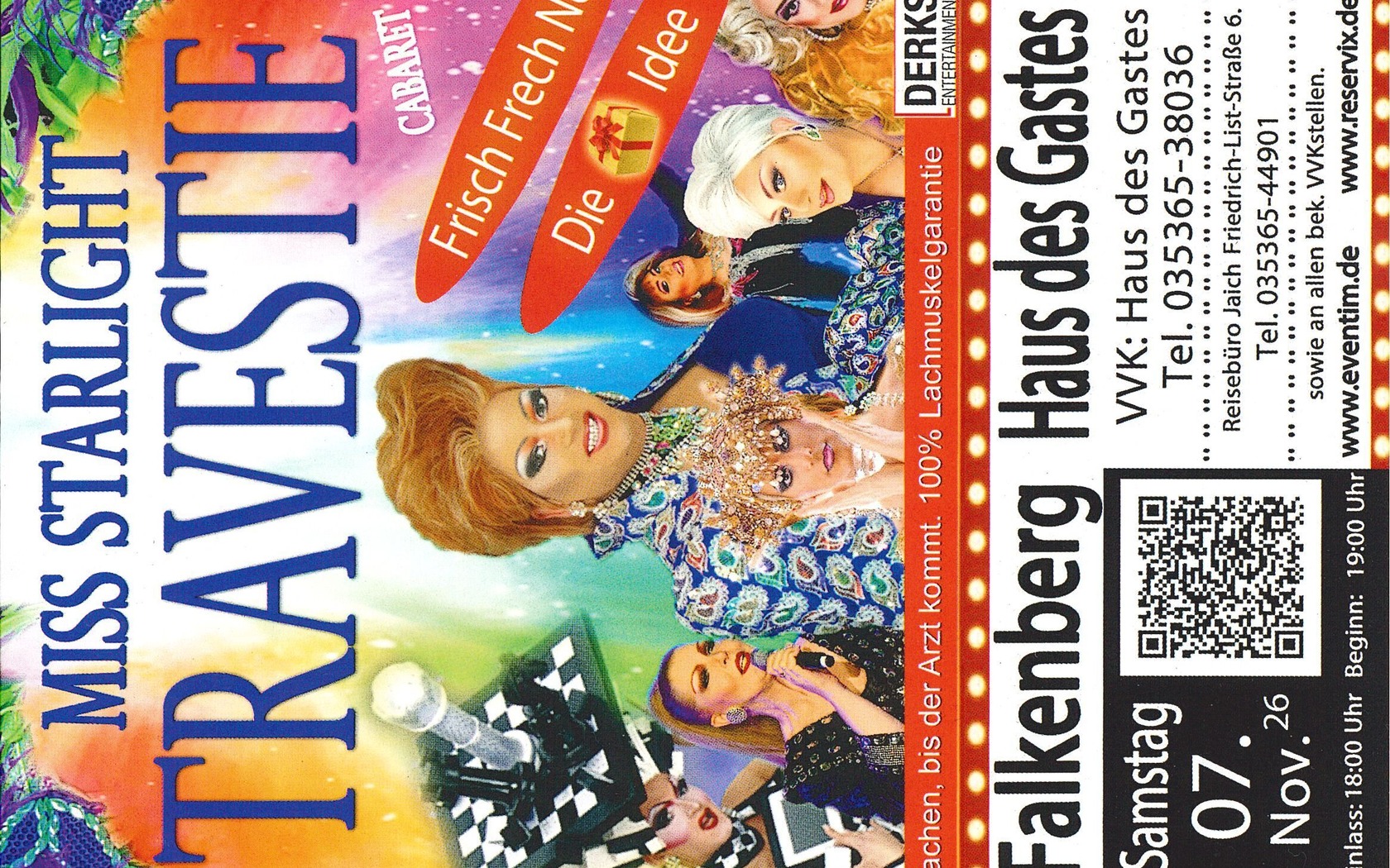 Miss Starlight und ihre glamourösen Kolleginnen entführen Sie in die faszinierende Welt der Travestie – frech, frivol, charmant und spektakulär!